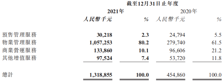 收入主要來源三個業(yè)務(wù):基礎(chǔ)物業(yè)管理服務(wù)、增值服務(wù)以及其他業(yè)務(wù)。