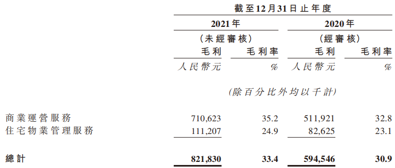 管商業(yè)物業(yè)管理及運營服務(wù)方面,報告期間內(nèi),實現(xiàn)總收入約為人民幣5.631億元,同比大幅增長約50.9%;商業(yè)物業(yè)管理及運營服務(wù)分部的毛利率為57.5%,同比輕微下跌1.5個百分點。