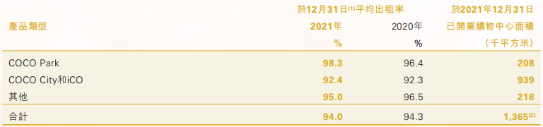 報告期間內(nèi),集團(tuán)出租率維持在94%的健康水平,合作商戶數(shù)量超4300家,同店銷售額較2020年同期增長約21%。