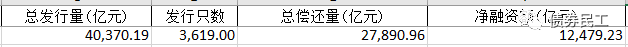 但是真實的數據卻和直觀感受截然不同。債券民工根據wind的信用債凈融資規模統計模板進行了統計,結果發現2021年第一季度累計發行債券40,370.19億元,超過了四萬億!發行只數達到了3619只,總償還量為27,890.96億元,凈融資額達到了12,479.23億元!
