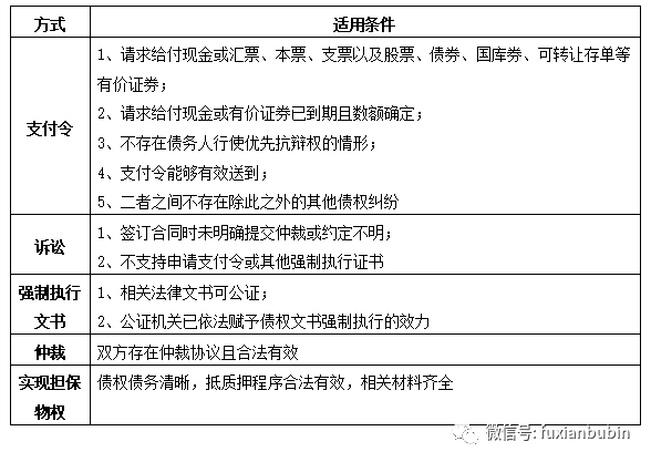 即通過民事訴訟、民商事仲裁、民事督促(支付令)、執(zhí)行公證債權(quán)文書、直接向法院申請實現(xiàn)擔(dān)保物權(quán)的方式,確立債權(quán)的合法性,依靠強制程序收回債權(quán)的清收處置方式。主要適用于債務(wù)人出現(xiàn)生產(chǎn)經(jīng)營陷入困境、財務(wù)狀況嚴重惡化,債務(wù)履行困難,停止營業(yè)或?qū)嶋H控制人下落不明,債務(wù)人還款意愿差,有明顯轉(zhuǎn)移資產(chǎn)或逃廢債務(wù)的行為,主要負責(zé)人或?qū)嶋H控制人涉及刑事案件等情形。其具體適用情形如下表: