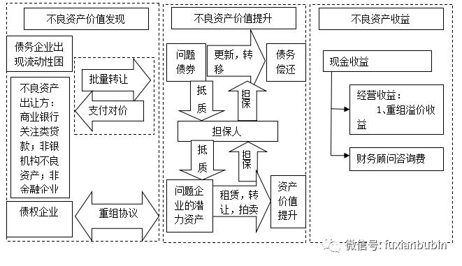 但是不同于其他幾種不良資產(chǎn)經(jīng)營模式,債務(wù)重組需要對企業(yè)未來經(jīng)營進行深度介入,通過企業(yè)的起死回生實現(xiàn)價值增值,所以債務(wù)重組是一個價值發(fā)現(xiàn)的過程,并通過價值經(jīng)營的提升,最終實現(xiàn)不良資產(chǎn)經(jīng)營主體與“有救企業(yè)”之間的共贏:
