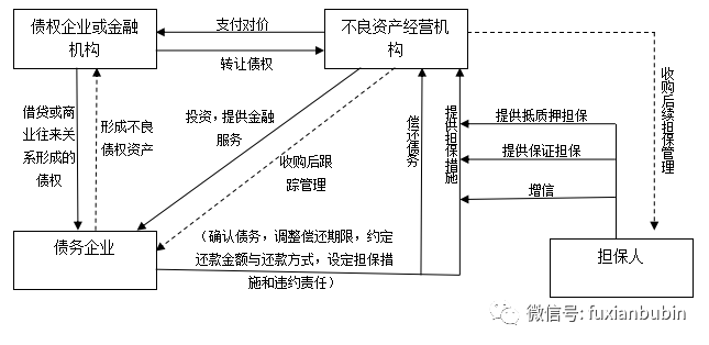 正因如此,債務(wù)重組是針對出現(xiàn)流動性困難的企業(yè),不良資產(chǎn)經(jīng)營機構(gòu)分別與債權(quán)人、債務(wù)人就還款金額、還款方式、還款時間等債權(quán)債務(wù)問題達成協(xié)議,通過更改債務(wù)條款,實行債務(wù)合并的方式,優(yōu)化該類企業(yè)的資產(chǎn)負債結(jié)構(gòu)、盤活企業(yè)不良資產(chǎn),幫助企業(yè)渡過財務(wù)危機的一種不良資產(chǎn)經(jīng)營模式,其基本業(yè)務(wù)流程如下圖: