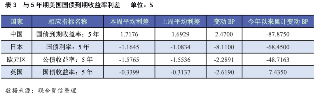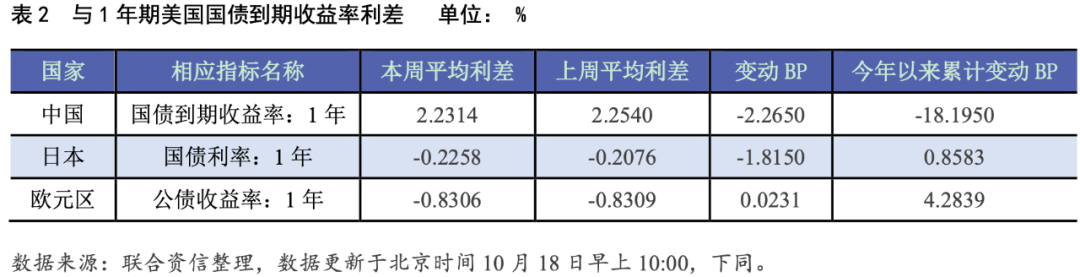 各期美債收益率均收漲,各主要經(jīng)濟(jì)體國債與美債收益率利差走勢不一