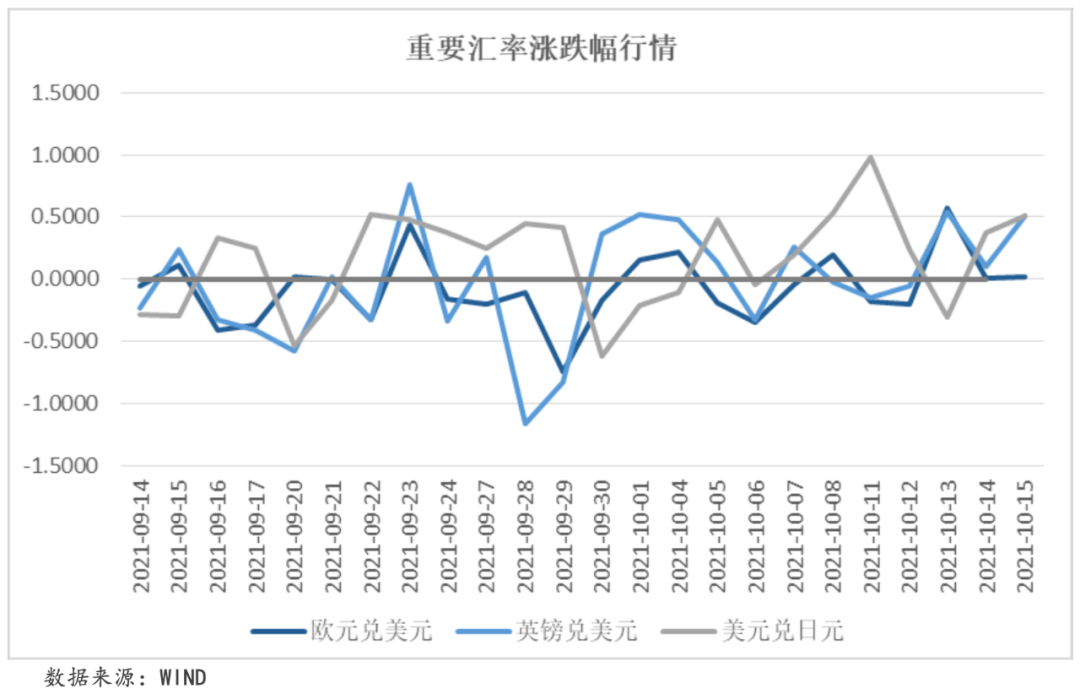 本周,在美元走弱的背景下,歐元和英鎊兌美元均小幅上漲。周內(nèi)歐元兌美元收于1.1599,周內(nèi)累計(jì)收漲0.23%;英鎊兌美元收于1.3744,周內(nèi)累計(jì)收漲0.90%。本周日元持續(xù)疲軟態(tài)勢,一是因?yàn)槭袌鼍S持對(duì)日本寬松貨幣政策的預(yù)期,二是日本發(fā)布的經(jīng)濟(jì)報(bào)告顯示,受半導(dǎo)體和供應(yīng)鏈緊張影響,日本國內(nèi)經(jīng)濟(jì)改善勢頭有所減弱。本周美元兌日元收于114.2550,周內(nèi)累計(jì)收漲1.80%。