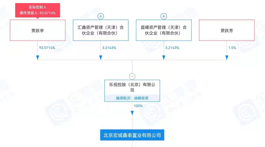 企查查資料顯示,北京宏城鑫泰是樂視控股(北京)有限公司的全資子公司,其背后的實(shí)際控制人是賈躍亭。