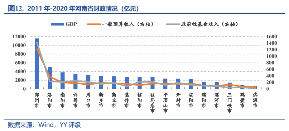 鄭州市級平臺雖然存在一定的股權關系,但在人財物方面相對獨立,金融機構也是各自授信,存在一定安全邊際;園區類平臺,航空港區定位較高,近幾年經濟發展迅速也累積了大量的債務,但“富士康”的標簽也是其產業仍在低端加工的表現,產業結構深層次的困惑是這位背負著中原崛起城市的破局關鍵點。此外,資本市場信心恢復仍需要時日,可能需要區域內暫時信貸支持和過渡。