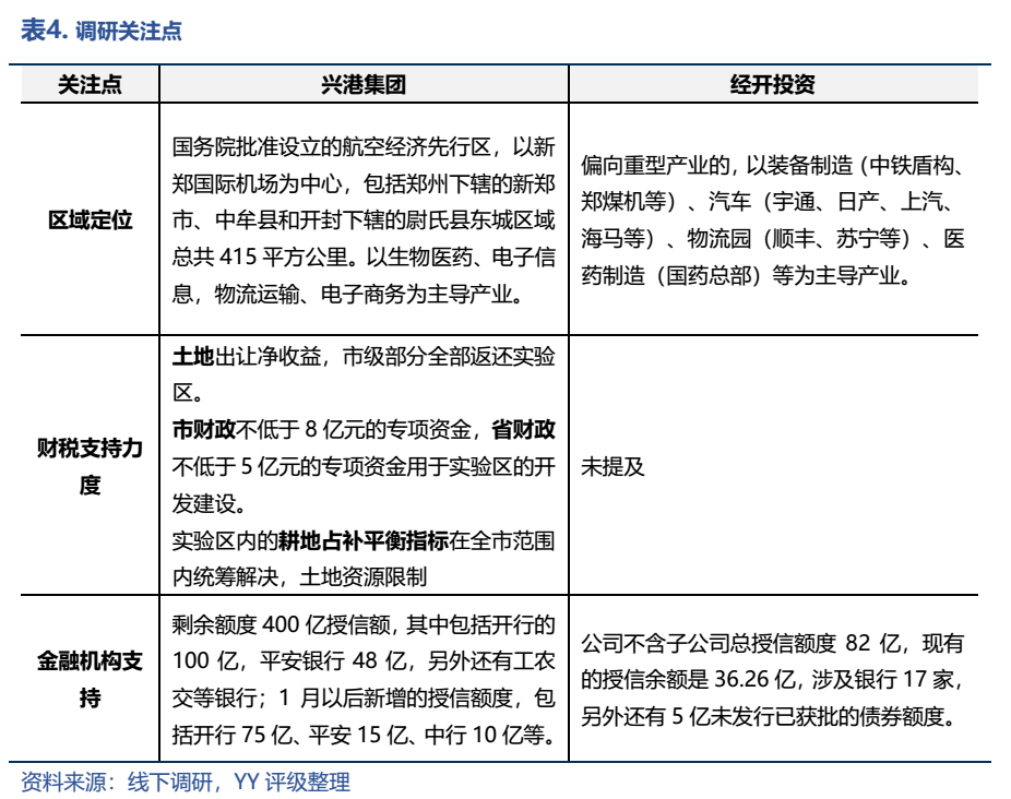 鄭州的區縣也相對發達,鄭東新區、航空港區和經開區是三個重要的增長極。本次調研也正好邀請到了航空港區和經開區的平臺:興港投資、經開投資。對于這兩個平臺,投資者較為關注區域發展及債務情況,尤其是發展較快的航空港區。