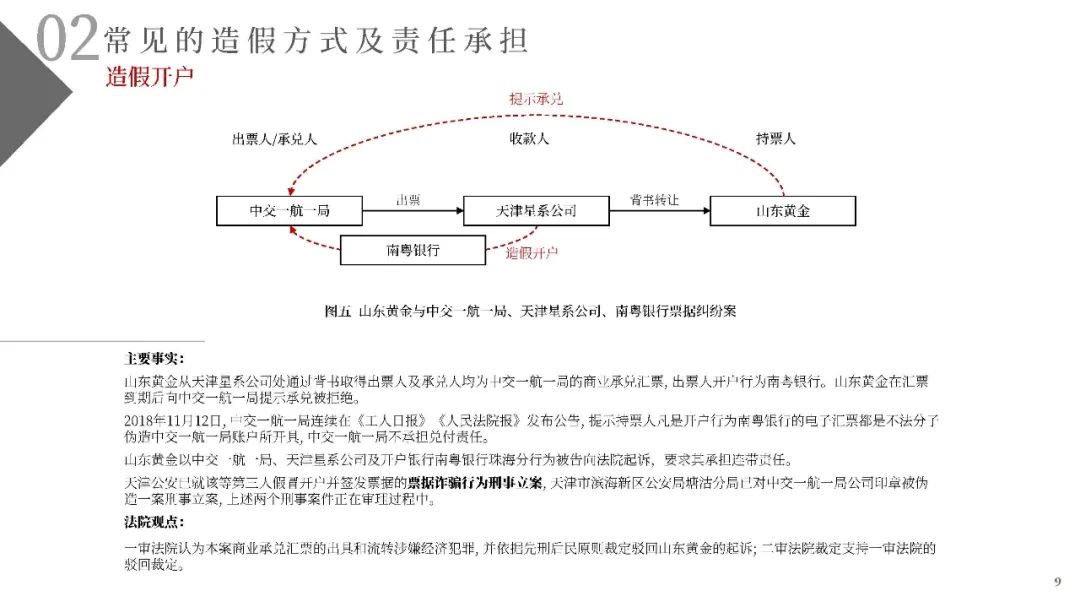 (一)不法分子精心設計、反復嘗試,通過在不同的銀行反復多次開戶的方式尋找開戶銀行的系統漏洞。利用部分開戶銀行未對票據行為人與實際開戶企業名稱進行一致性校驗的漏洞,通過在商業承兌匯票的承兌人名稱或保證人名稱上惡意記載為“中國某行”、“某行股份有限公司”或“某某銀行”的方式簽發電子商業承兌匯票,企圖冒充銀行承兌匯票;