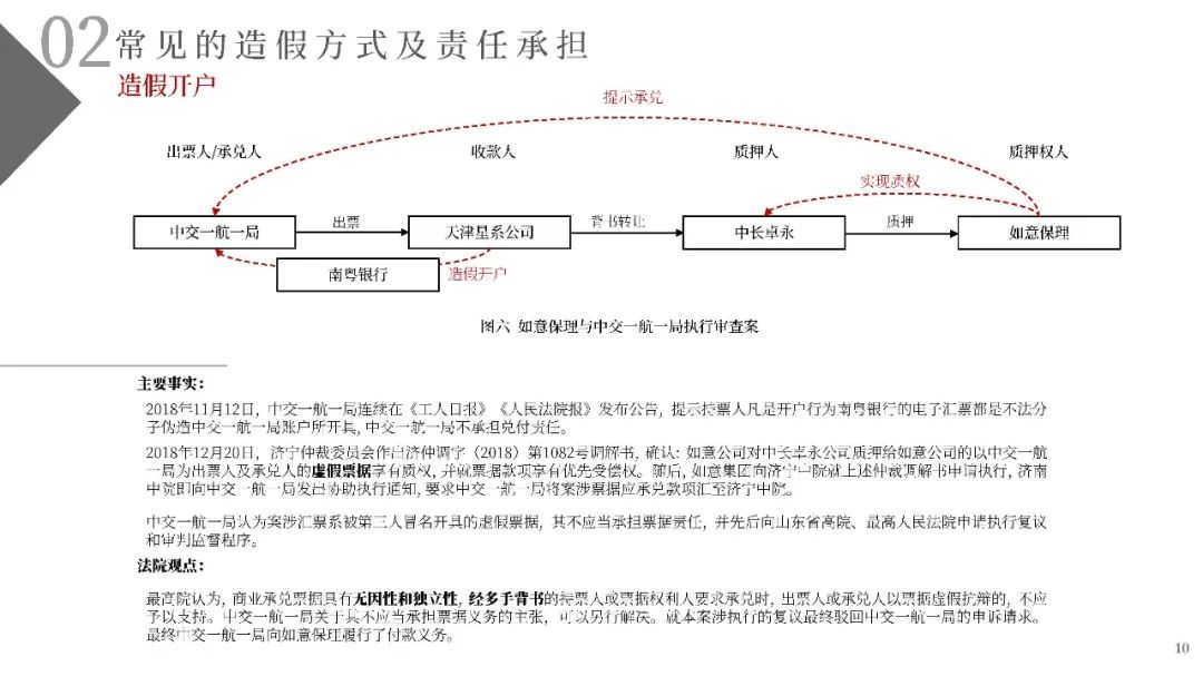 最高院認為, 商業承兌票據具有無因性和獨立性, 經多手背書的持票人或票據權利人要求承兌時, 出票人或承兌人以票據虛假抗辯的, 不應予以支持。中交一航一局關于其不應當承擔票據義務的主張,可以另行解決。就本案涉執行的復議最終駁回中交一航一局的申訴請求。最終中交一航一局向如意保理履行了付款義務。