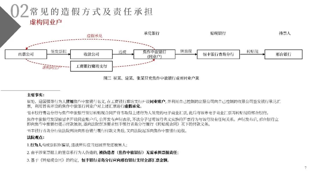 崔艷、逯國強等行為人冒用焦作中旅銀行名義, 在工商銀行廊坊支行開設同業賬戶, 并利用自己控制的出票公司向自己控制的收票公司簽發銀行承兌匯票,利用冒名開設的焦作中旅銀行同業戶對上述匯票進行虛假承兌。