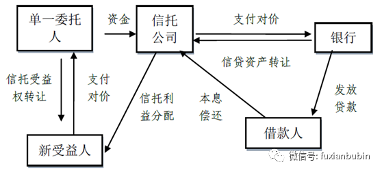 1.4單一資金受讓信貸資產(chǎn)類業(yè)務(wù),其業(yè)務(wù)流程圖如下: