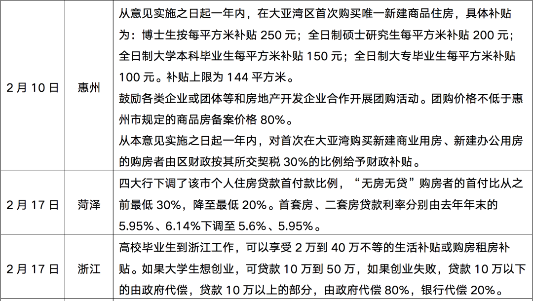 針對近期多地出現的降低首付、降低公積金、降低房貸、鼓勵去庫存等放松政策,部分媒體認為2月份利好政策不斷,將不斷扭轉房地產頹廢態勢,助力市場交易活躍,隨著當前房地產市場中政策進一步寬松,市場已經完成筑底,后續則有反彈、復蘇的機會。