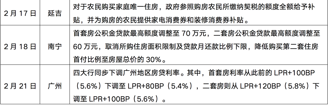 3、降低房貸利率。如四大行同步下調廣州地區房貸利率。首套房利率從此前的5.6%下調至5.4%,二套房則從5.8%下調至5.6%。