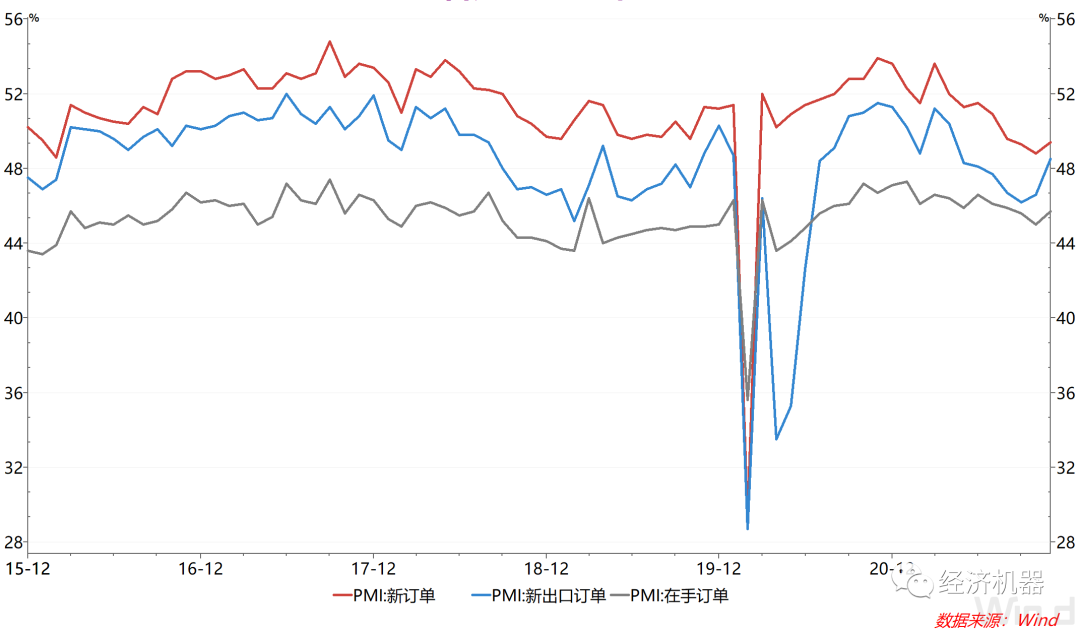但PMI指標盡管停止惡化,但分項指標顯示,需求仍然較弱,反彈缺乏動力,穩增長政策仍需要發力: