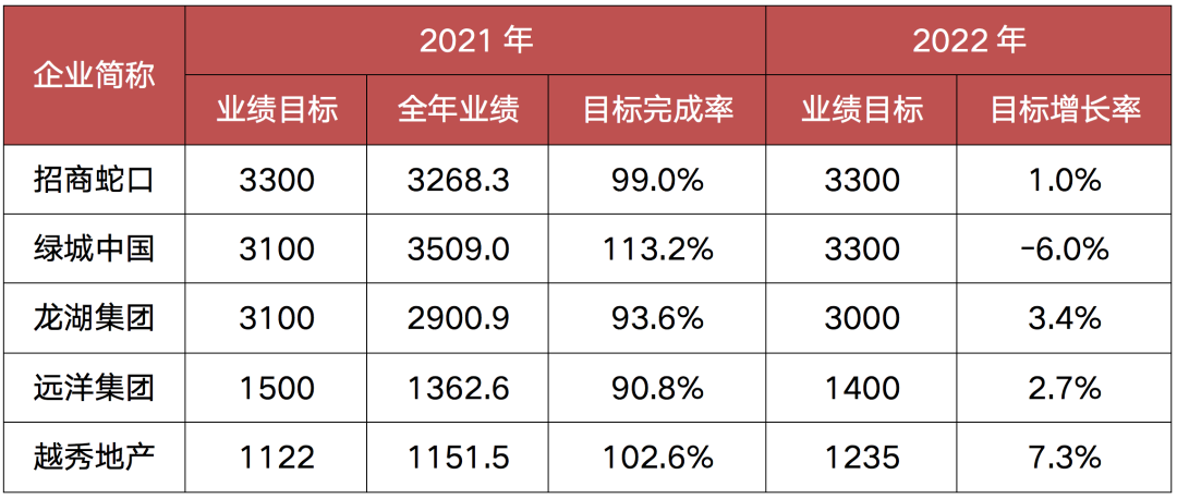 從部分企業已經披露的年度業績目標來看,預計2022年會有多數企業保持去年的規模預期,也會有不少房企根據自身的貨值和去化率水平,適度調降全年的銷售目標。
