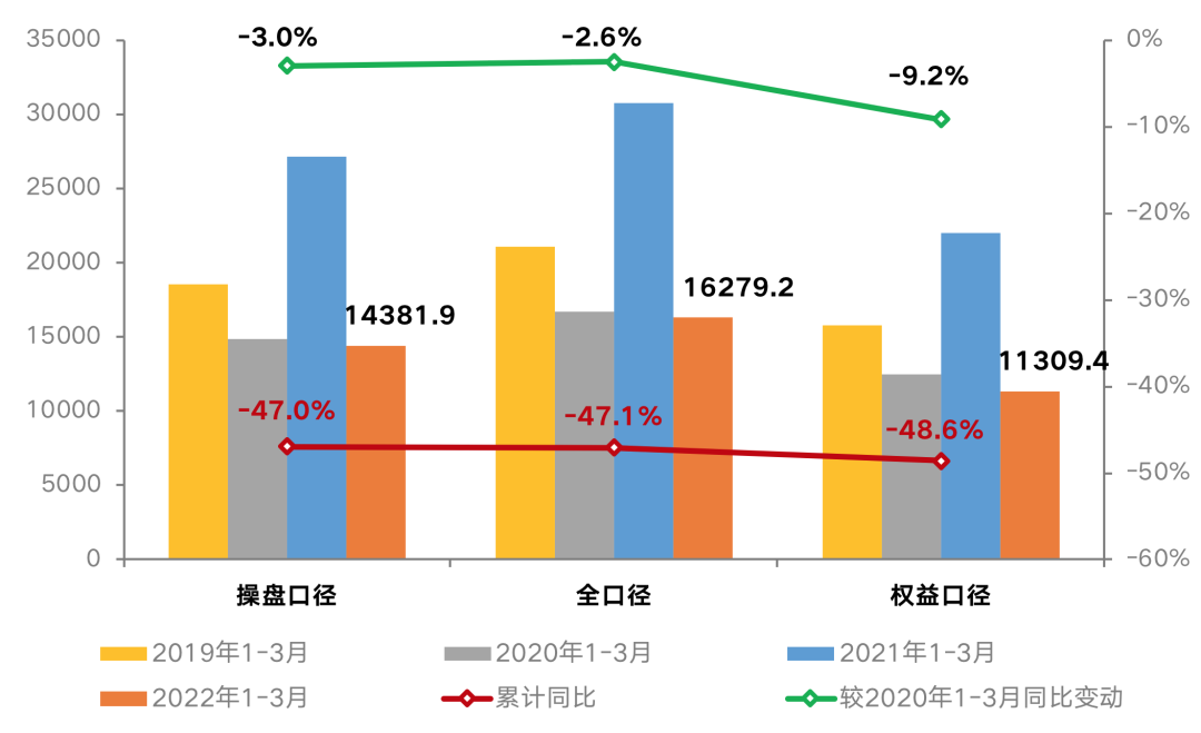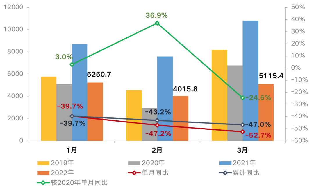 3月單月業績同比降52.7%,較2月降幅擴大5.5個百分點,相比1月業績規模降低2.6%。