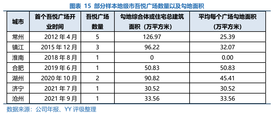 新城的吾悅廣場在眾多商業(yè)品牌中是運(yùn)營較為成功的代表,這一優(yōu)勢反映了新城在商業(yè)項(xiàng)目中成熟的運(yùn)營能力,另外一個(gè)方面,吾悅廣場的品牌力量一定程度上也成為了新城在周期中的保護(hù)傘。