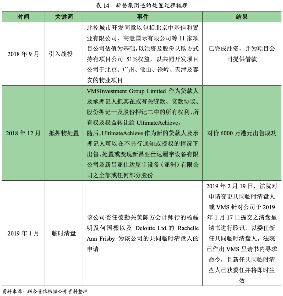 (2)違約處置方式二:出售資產——新昌集團