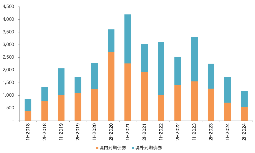 另一方面,在2016年年底境內(nèi)債發(fā)行受限后,房企發(fā)債轉(zhuǎn)向海外,2017年開(kāi)啟海外債潮“元年”,2-5年的發(fā)債年限是主力,所以房企近幾年境外的到期量均較大。
