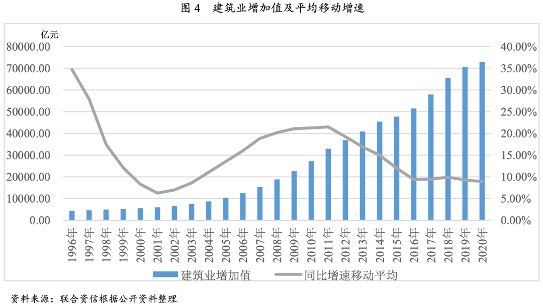 從歷史違約情況來看,建筑施工企業的違約既有行業景氣度下行、宏觀政策變化等非企業可控的外部原因,也有企業經營管理和財務管控等方面的內部問題。本文從聯合資信對建筑施工企業所使用的信用評級方法出發,選取了宏觀風險、行業風險作為違約建筑施工企業的外部原因進行分析,同時選取企業基礎素質、企業管理、經營及周轉、債務杠桿和償債能力等維度作為違約建筑施工企業的內部原因展開論述。