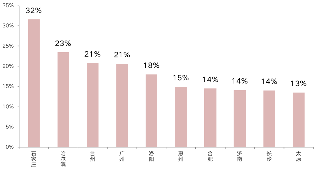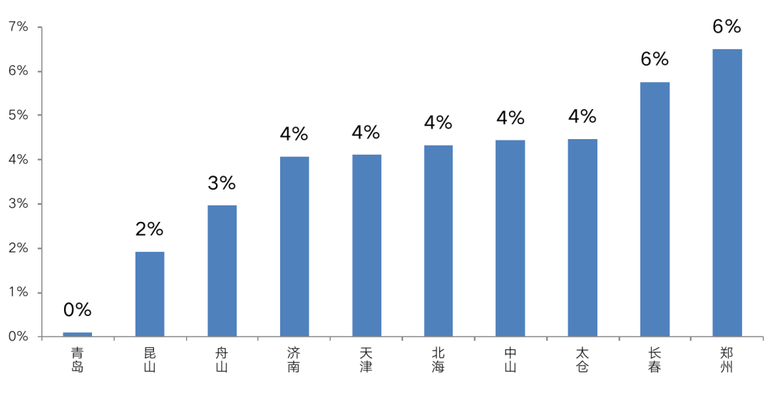 圖:溢價(jià)率最低TOP10城市