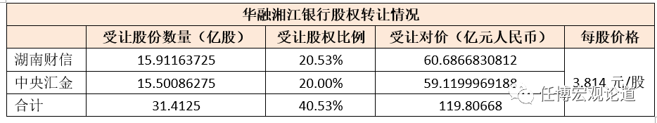 一、中國華融以119.81億元的對價轉(zhuǎn)讓其持有的華融湘江銀行全部股權(quán)