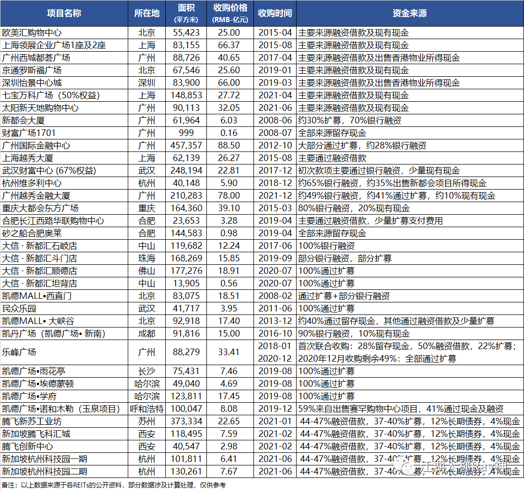 當然,也并不是所有的收購案都一定會發生擴募,因為并不是所有的收購都有類似于國金中心這樣的標的。對于一些存續時間較長的REITs來說,想要收購一些標的較小的項目時,留存收益加上外部融資大多時候是可以實現的。并且,有的REITs可能還會通過出售一部分資產來換取購入新項目的資金。比如:越秀房托在收購上海宏嘉大廈等項目的過程中并沒有進行擴募,而是借助了一定的融資;領展在收購中心城等項目時也沒有依靠擴募,而是出售了香港的部分物業。