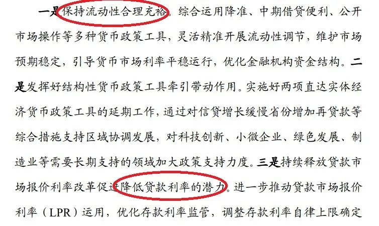 “內(nèi)容摘要”部分,報(bào)告開宗明義第一點(diǎn)就說了:保持流動(dòng)性合理充裕……