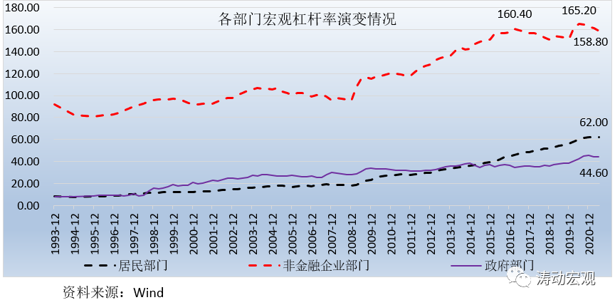 宏觀杠桿率是指非金融企業部門、政府部門、住戶部門從金融體系(含金融市場和金融機構)獲得的債務余額與年度國內生產總值的比例,這是防范化解金融風險的決策依據。中國社科院國家資產負債表研究中心每季度會公布各部門的杠桿率情況,當然央行自身也會對各部門的宏觀杠桿率進行測算(通常不會公布)。