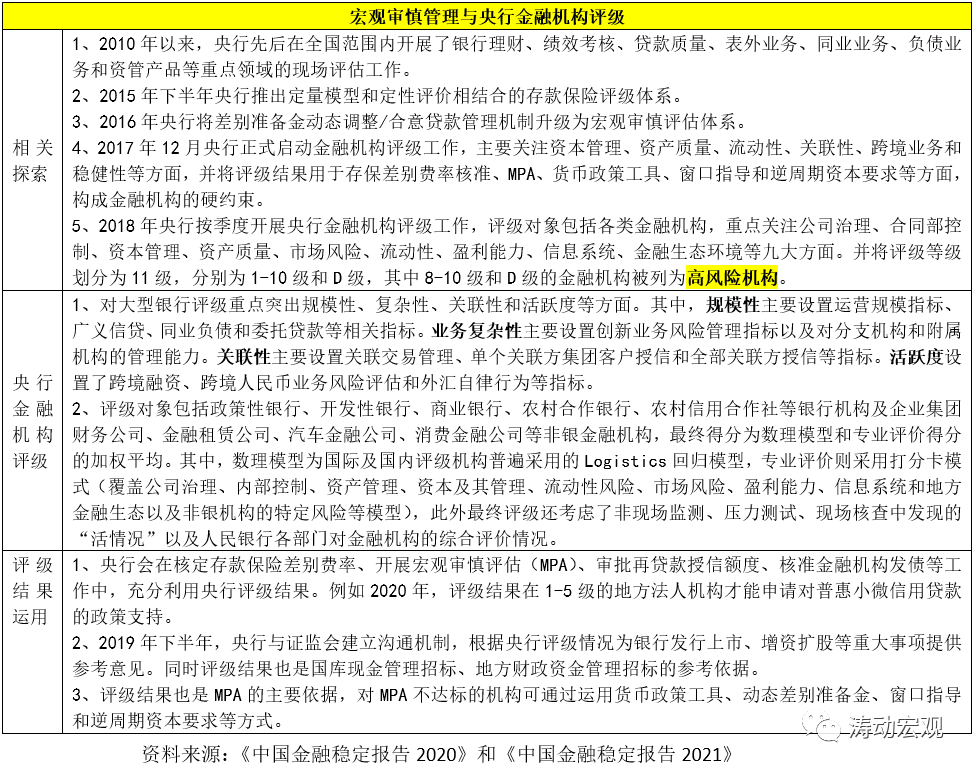(二)過去幾年的金融穩定報告主要包括宏觀經濟運行、金融業穩健性評估以及宏觀審慎管理三個部分。今年的金融穩定報告在保持前兩個部分不變的基礎上,將第三部門由之前的“宏觀審慎管理”調整為“構建系統性金融風險防控體系”,內涵上更豐富,畢竟宏觀審慎管理只是系統性金融風險防控的一部分。