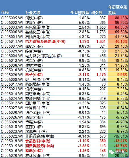 2021年9月的今天,打開行業年內漲幅榜一看,媽呀,原來大周期才是YYDS。