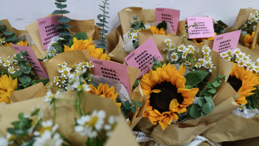 今年教師節前一天,嘉天下教師業主們提前收到一束鮮花。其中,二期有位教師業主忍不住在社交平臺分享,稱贊“我們的小區物業真不錯”。