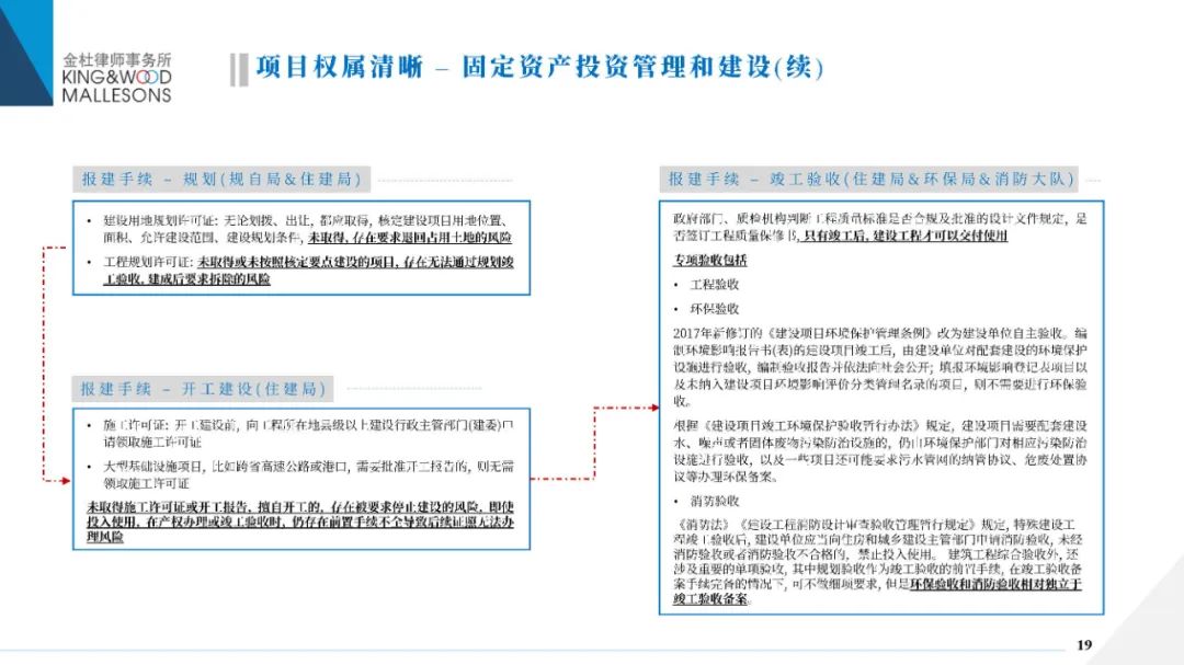 ?建設用地規(guī)劃許可證:無論劃撥、出讓,都應取得,核定建設項目用地位置、面積、允許建設范圍、建設規(guī)劃條件,未取得,存在要求退回占用土地的風險?工程規(guī)劃許可證: 未取得或未按照核定要點建設的項目, 存在無法通過規(guī)劃竣工驗收, 建成后要求拆除的風險