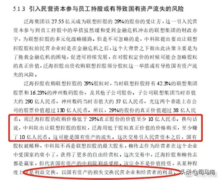 “如果司馬南的質(zhì)疑不夠?qū)I(yè)、不夠分量,那么這篇學(xué)術(shù)論文里所提出的聯(lián)想控股09年改制中涉嫌至少10億國資流失的質(zhì)疑,夠不夠?qū)I(yè)呢?”