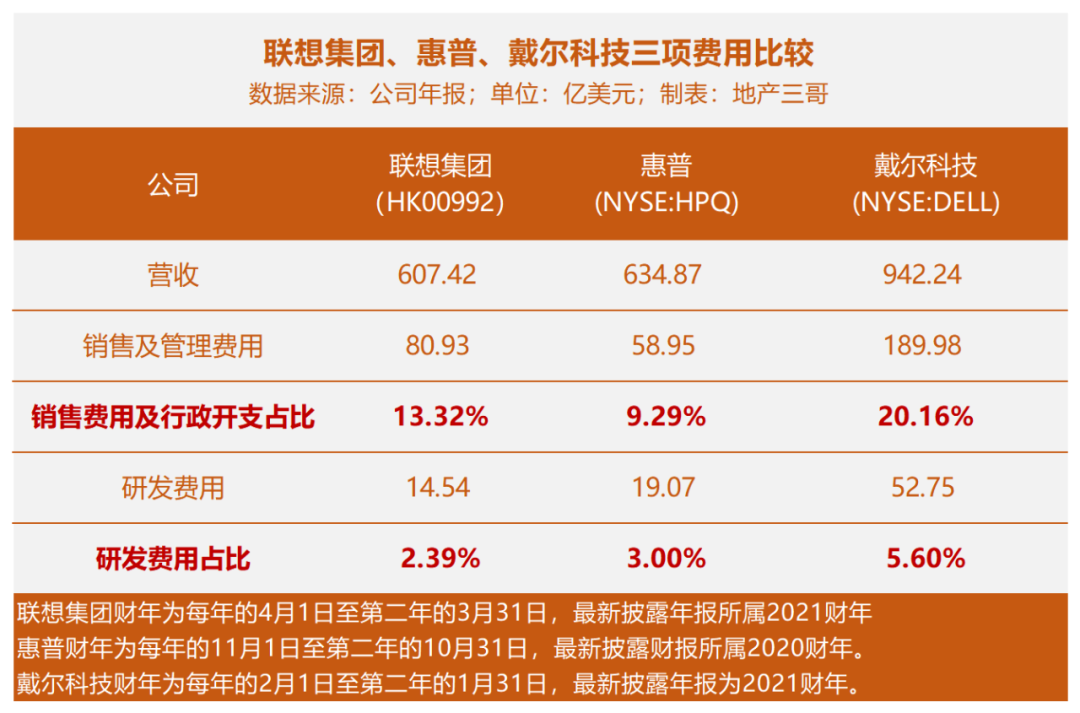 三家都是同行,橫向比較,聯(lián)想集團(tuán)高嗎?
