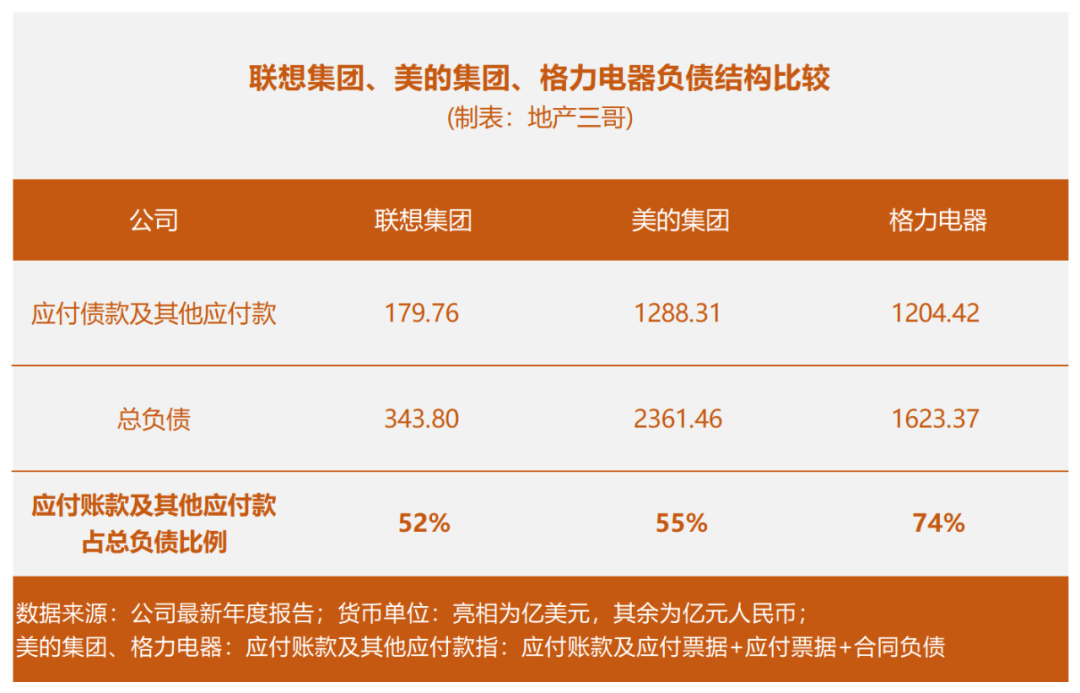 照這個(gè)邏輯,美的、格力這些經(jīng)營優(yōu)秀的公司都應(yīng)該立馬還錢,看看它們的負(fù)債結(jié)構(gòu)比較: