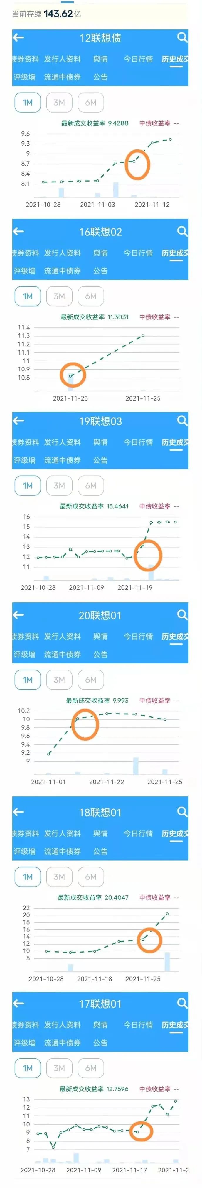 前幾個(gè)月,聯(lián)想債券異常成交率高,但金額小,每次最多幾十萬元,就是一筆折價(jià)很多、收益率很高的極小額交易。