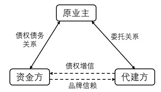 (2)代建方投入意愿較強而引入資金方。在過去幾年中,部分房企為沖規模,往往在忽視項目客觀資質的情況下大量獲取項目,而對于部分資質較差的項目代建方往往以為通過“融資代建”的模式可以最大限度隔離風險,因而利用自身商業信譽人為強行引入資金方。在這種情形下,資金方基于代建方商業信譽背書而投入的可能性即大大增加。