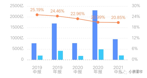 2021年上半年,融創中國的銷售毛利率為20.85%,自2019年以來該指標就持續下滑,主要與其2017年土地溢價有關。