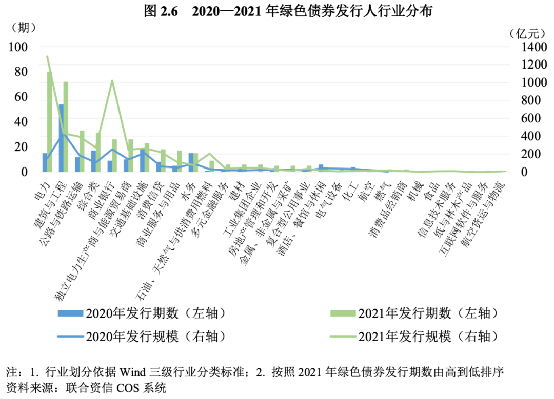 [7] 2021年4月,《綠色債券支持項目目錄(2021年版)》正式發布,將綠色債券支持項目劃分為節能環保產業、清潔生產產業、清潔能源產業、生態環境產業、基礎設施綠色升級、綠色服務六大領域。
