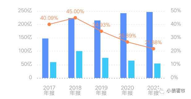 由于所結轉項目土地成本上升,路勁的毛利率水平持續下降,2021年末該指標為21.88%,較2018年已腰斬,公司盈利能力持續惡化。