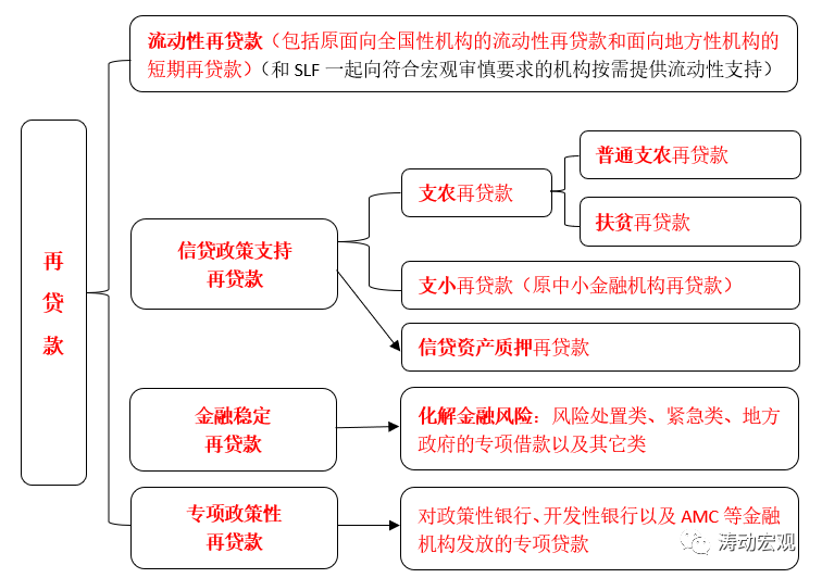 (2)細(xì)分后的流動(dòng)性再貸款包括之前人總行向全國(guó)性存款類金融機(jī)構(gòu)發(fā)放的流動(dòng)性再貸款和人行分支機(jī)構(gòu)向地方性存款類法人機(jī)構(gòu)提供的短期再貸款。