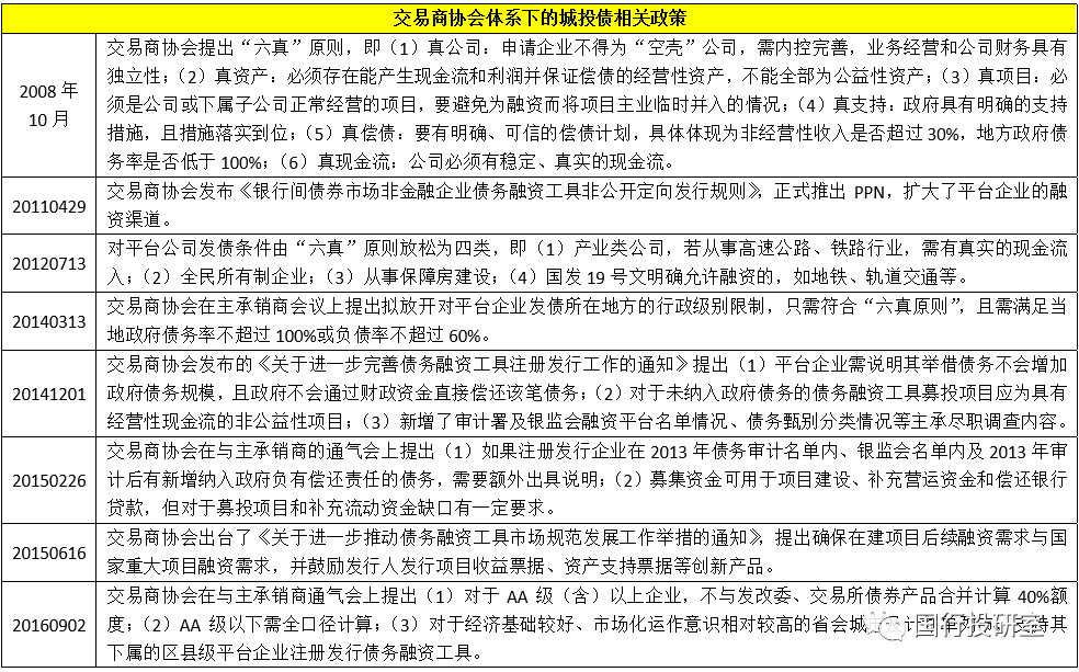 相較而言,城投債在銀行間市場發(fā)行債務(wù)融資工具受到的面上約束可能是最少的,具體來看城投債發(fā)行中票、短融等債務(wù)融資工具主要受到“六真”原則的約束,即真公司、真資產(chǎn)、真項目、真支持、真償債、真現(xiàn)金流。
