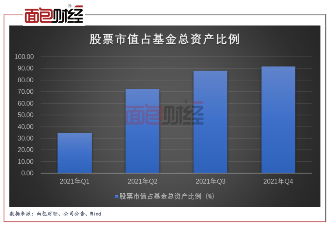 數(shù)據(jù)顯示,易方達(dá)戰(zhàn)略新興產(chǎn)業(yè)股票型證券投資基金的股票市值占基金資產(chǎn)凈值比例從2021年一季度不到四成一路上升至2021年四季度超過九成。