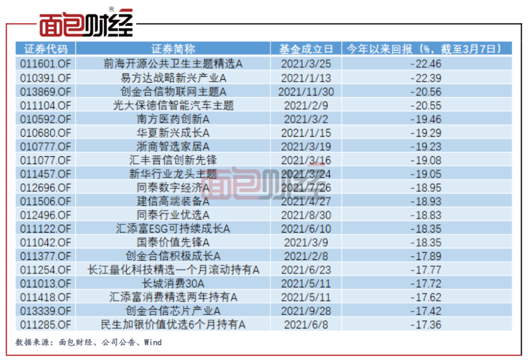 圖1:2021年新成立普通股票型基金今年以來回報(bào)排名倒數(shù)前20