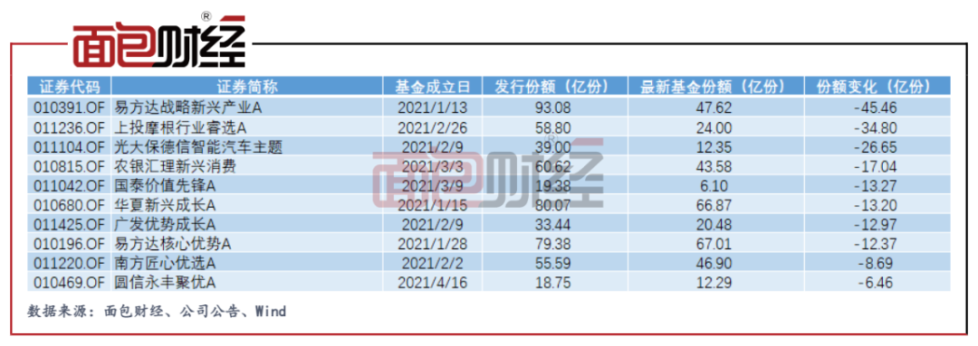 圖4:2021年新成立普通股票型基金份額減少排名前10