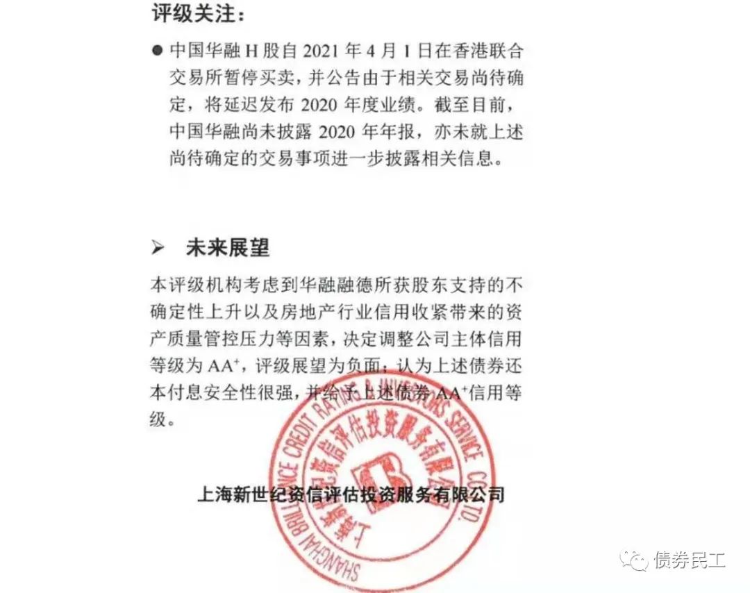 一、華融融德資產主體評級下調至AA+
