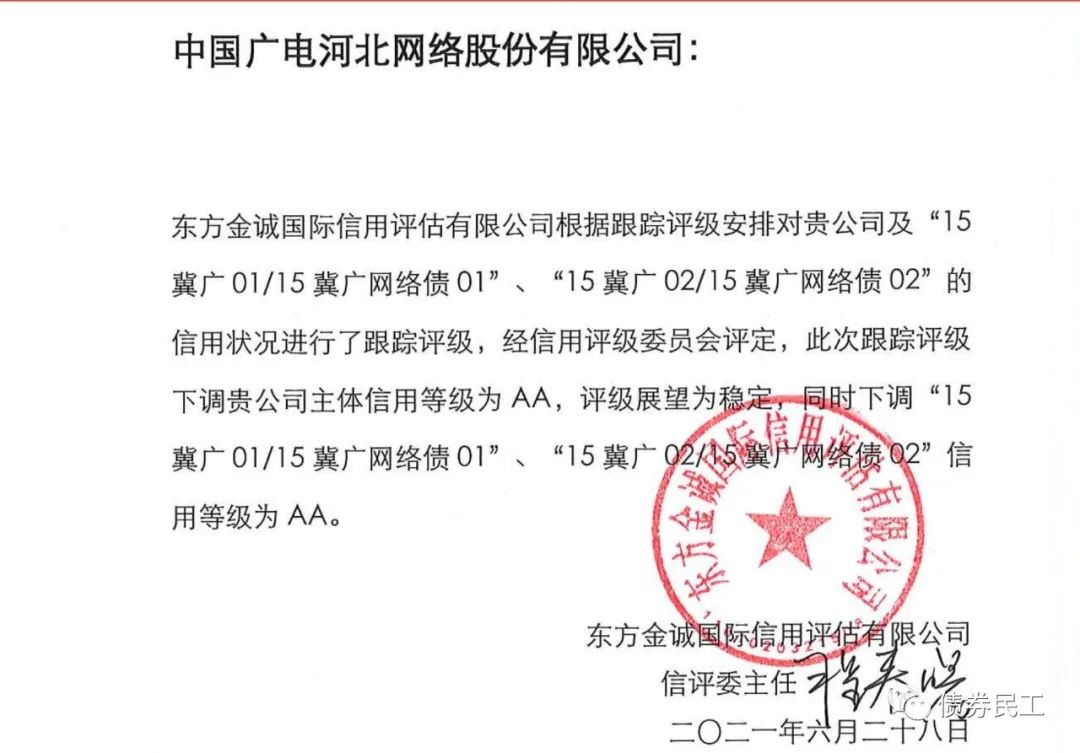 四、河北廣電主體評級從AA+下調至AA