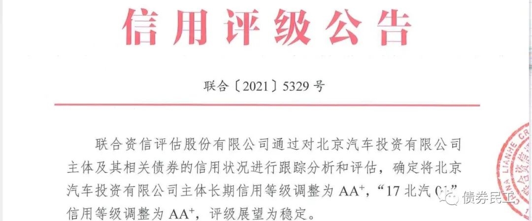 北汽投資為北京汽車股份有限公司的控股子公司,實際控制人是北京市國資委。根據北汽投資披露的2020年年報,2020年度投資收益為-29.30億元,已經超過公司2019年末凈資產的10%。目前北汽投資的存量債券只有一只小公募公司債券,為“17北汽01”,債券金額為8億元。北汽投資不是近期唯一一家主體信用評級被下調的北京市國有企業,在此之前的2021年6月22日,海淀區國資委控股的北京三聚環保新材料股份有限公司的主體信用評級由AA+下調至AA(海淀國資委控股的三聚環保主體評級被下調至AA!)